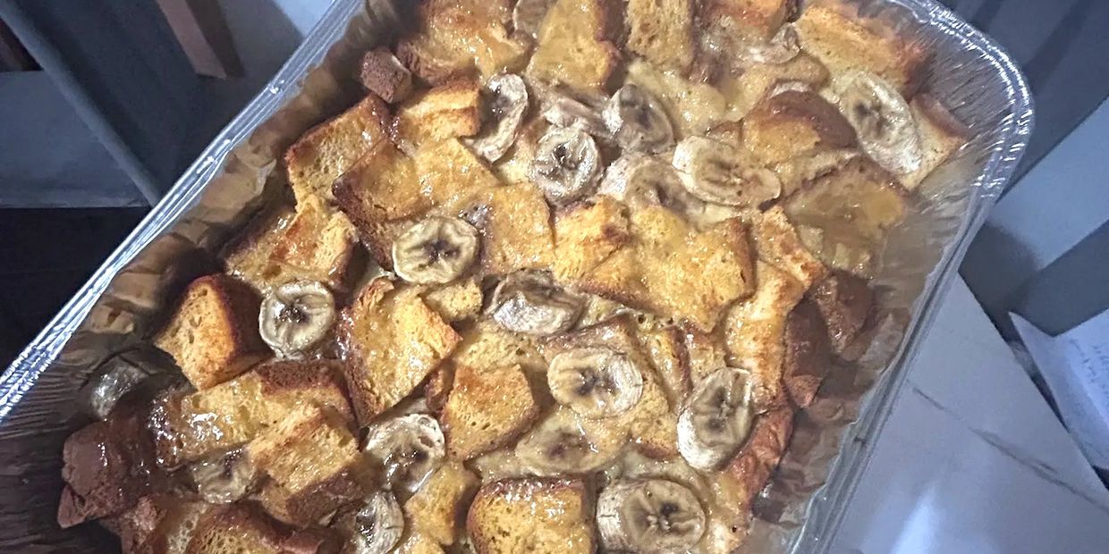 Layer the torn bread and bananas going bread, bananas, bread, bananas until used up.