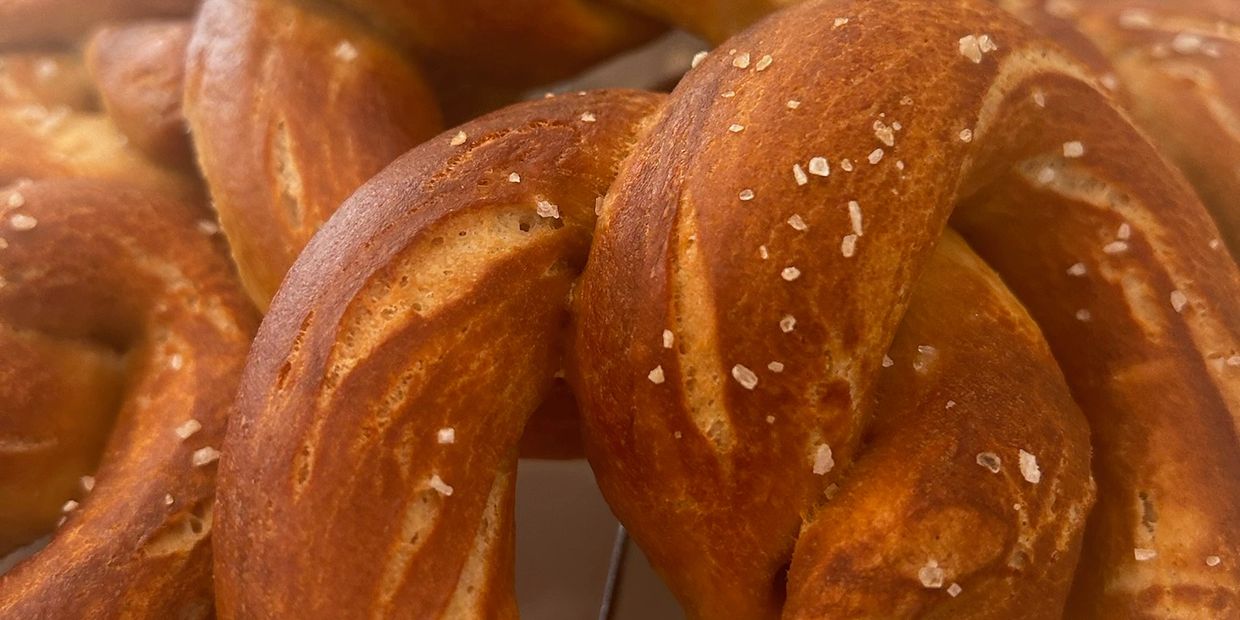 Prepare 2 sheet trays with parchment and spray heavily with baking spray. If you don’t have baking spray you can heavily grease. This is important so the pretzel doesn't stick to the pan