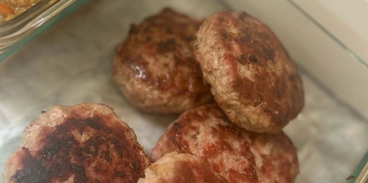 Form 6 large balls like giant meatballs. Press them into the heated pan, and press down with a spatula to form a burger shape (I like them to be kind of rustic looking) Cook for about 3-5 minutes on each side, giving them a nice char on each side. And check for doneness using a meat thermometer, cook until they reach 165 in the center.